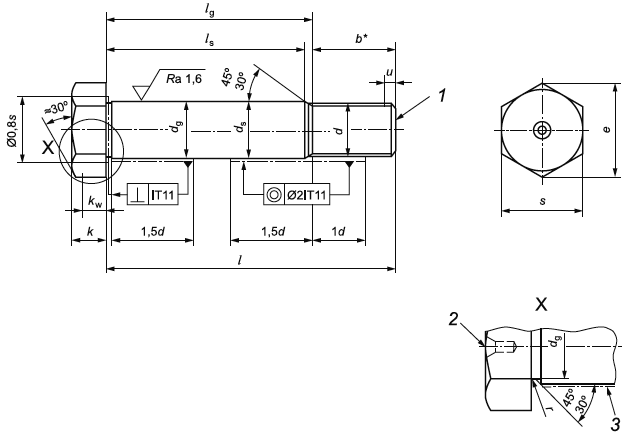 Ключевые слова: автомобильные транспортные средства, болты установочные, шестигранная головка, длинная цапфа, технические требования, обозначение | |