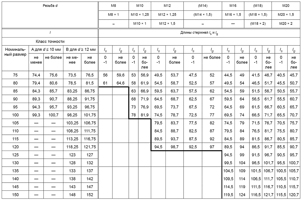 Резьба d | М8 | М10 | М12 | (М14) | М16 | (М18) | М20 | |