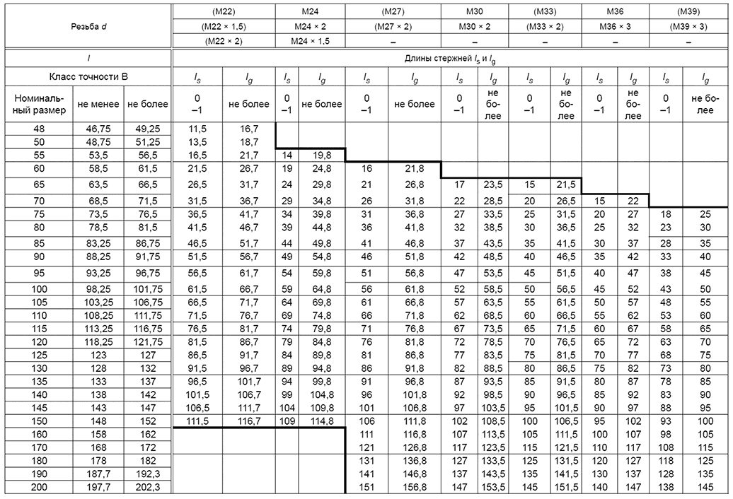 (М22 1,5) | М24 2 | (М27 2) | М30 2 | (М33 2) | М36 3 | (М39 3) | ||
