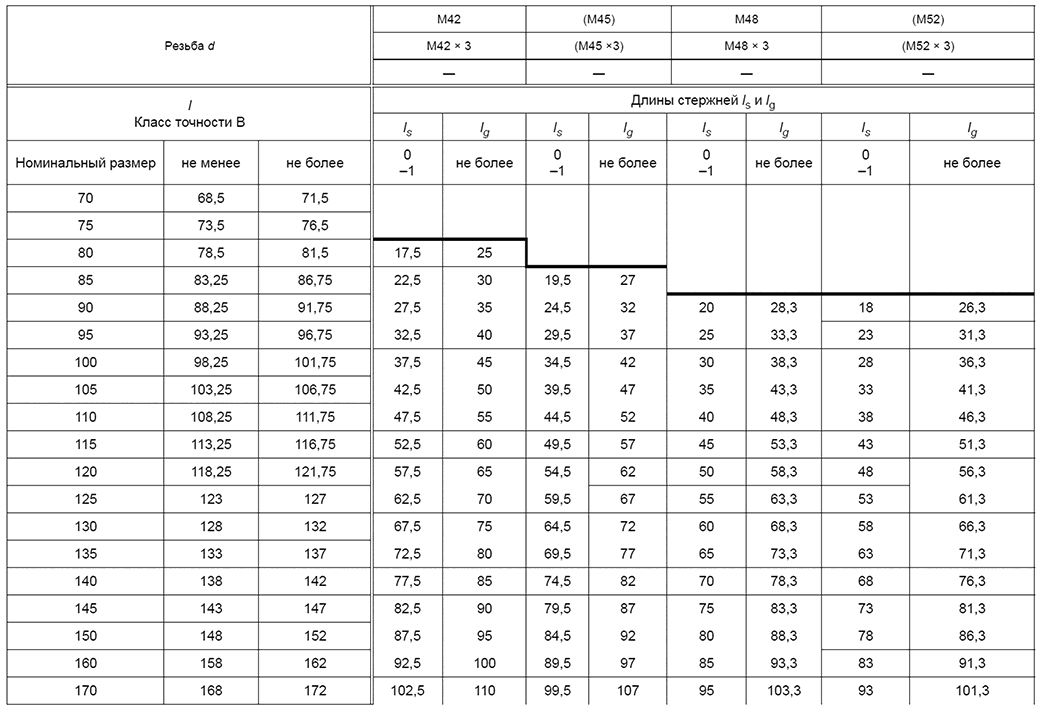 Резьба d | М42 | (М45) | М48 | (М52) | ||||||