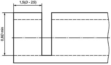 6.3 При проведении испытания на конце трубы на ней предварительно выполняют надрез, перпендикулярный продольной оси трубы, глубиной не менее 0,8D (см. рисунок 1). Расстояние от торца трубы до надреза должно составлять приблизительно 1,5 (D-2S), но не менее 10 мм и не более 100 мм.
