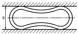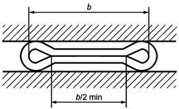 7.1 Испытание проводят при температуре 20 7.2 Образец сплющивают до заданного расстояния между сплющивающими поверхностями H (см. рисунок 2) или до соприкосновения противоположных сторон образца на длине не менее b/2 (см. рисунок 3). | |