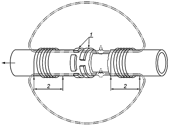 5.1 Трубу необходимо проконтролировать для обнаружения продольных дефектов (см. рисунок 1) и (или), по согласованию между изготовителем и заказчиком поперечных дефектов (см. рисунок 2), методом рассеяния магнитного потока. Ограничения по толщине стенки трубы не определены; данные по ограничению области применения метода приведены в приложении А.