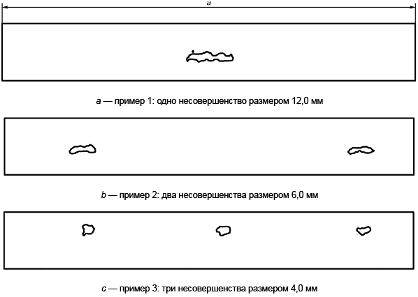 9.2 Несовершенствами являются несплошности сварного шва, обнаруженные при радиографическом контроле сварного шва в соответствии с настоящим стандартом. Несовершенства с размерами и/или плотностью скопления, не превышающими соответствующие критерии приемки, считаются несущественными для предполагаемого практического применения труб.