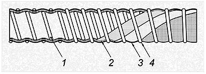 3.1.1 армирование: Усиление конструкции и формирование каркаса либо из спирально наматываемой армирующей проволоки, либо лентами из металла или пластика для обеспечения прочности на расширение от воздействия внутреннего давления и/или внешней защиты.