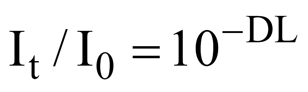 а также для определения оптической плотности на единицу длины пути прохождения света D, которая также определяется как линейный десятичный коэффициент поглощения или десятичный коэффициент ослабления.