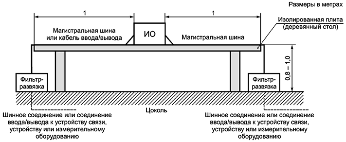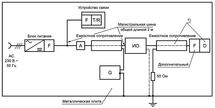 Примечание 1 - Это подключение ИО используется для испытания напряжения помех на основных выводах в том случае, если ИО является шинным устройством.