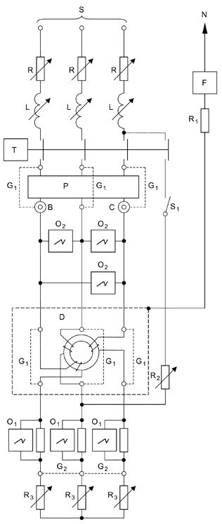 5) значение сопротивления средств для получения максимума ампер-витков, необходимых для выполнения испытаний по 9.15. Цепь может быть соединена между фазами или между фазой и нейтралью.