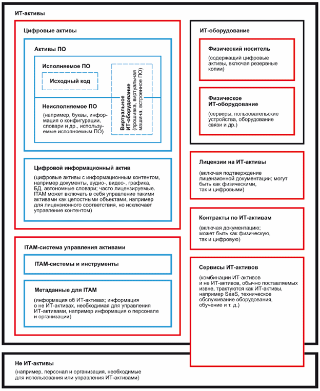 ИТ-активы охватывают широкий спектр типов активов. На рисунке 1 схематически показаны основные типы ИТ-активов.