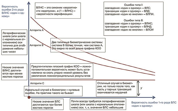 Рисунок G.1 - Интерпретация № 1 графика КОО: вероятности ошибок, характеристики и сравнения алгоритмов