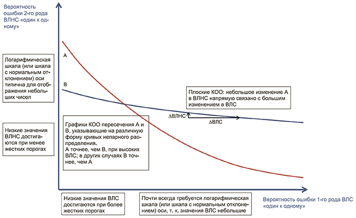 Приведенные выше коды Matlab и Python возвращают значения ВЛС и ВЛНС для стольких порогов значений, сколько существует результатов сравнения. В некоторых испытаниях, например при полном перекрестном сравнении в режиме отложенного задания, код может возвратить чрезмерное количество данных для построения графика. Приведенный ниже код R позволяет получать данные для заданного набора пороговых значений. В предлагаемом коде используется эмпирическая функция распределения R ecdf ().