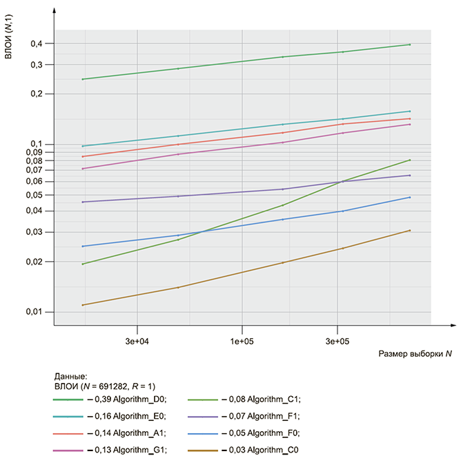 2 Сумма ВИПИ (N, R, T) и ВЛОИ (N, R, T) для одного и того же ранга, порога и числа зарегистрированных испытуемых субъектов в системе равна 1.
