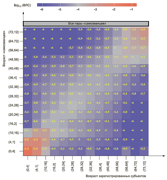N - число зарегистрированных биометрических контрольных шаблонов.