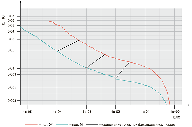 # Вычисляет наблюдаемые ВЛС и ВЛНС при заданном наборе порогов для построения графика