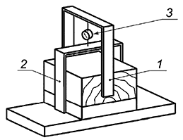 1 - скоба, зажимающая шашку; 2 - скоба, нажимающая на доску; 3 - прибор, измеряющий усилие, направленное на отрыв шашки от доски