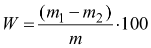7.5.1 Массовую долю влаги в изделиях (W), %, вычисляют по формуле