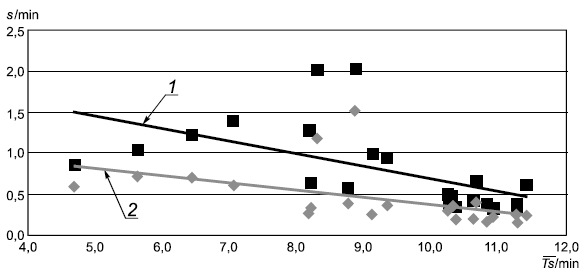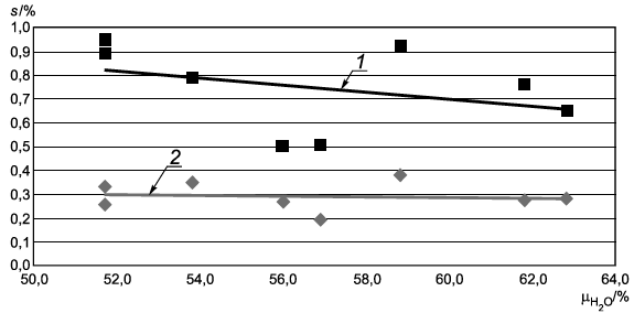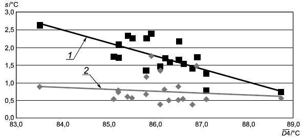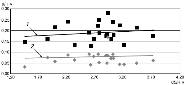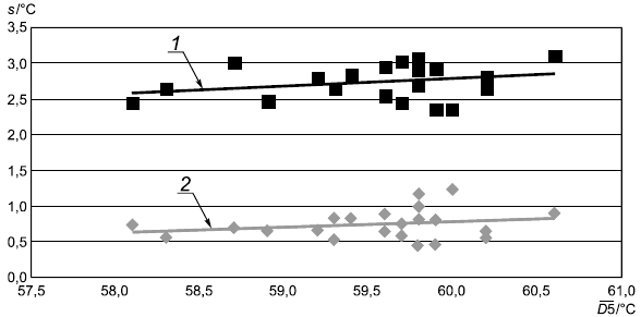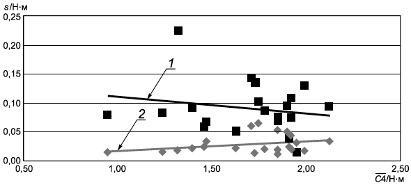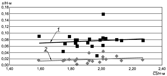 Рисунок В.12 - Зависимость стандартного отклонения прецизионности от среднеарифметического значения