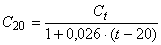 В случае, если измерения удельной электрической проводимости анализируемого раствора сахара и воды проводят при температуре, отличной от 20°С, но не более ±5°С, то необходимо привести значения их удельных электрических проводимостей к значениям при температуре 20°С по формуле