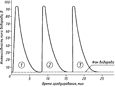 Градуировочный коэффициент устанавливают как среднее арифметическое результатов трех измерений (рисуно