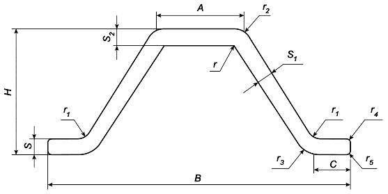 Рисунок 1 - Прессованный косоугольный профиль трапециевидного отбортованного сечения