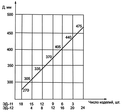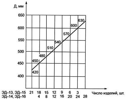 Рисунок А.2 - График определения количества изделий для кладки электродного кольца (один ряд) для свода толщиной 300 мм
