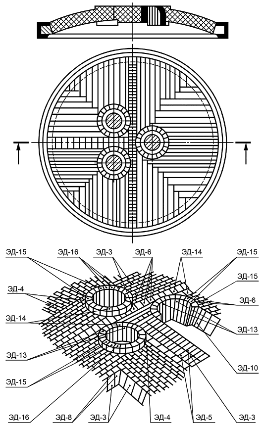 Примерная схема кладки свода электросталеплавильной печи емкостью 8-30 т
