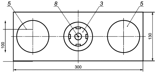прозрачной пластины из органического стекла толщиной (9±1) мм. Размер пластины должен быть 300130 мм. Предельные отклонения размеров - не более ±5 мм. В центре пластины находится отверстие диаметром (39±2) мм. В отверстие пластины вставляют трубку из прозрачного кварцевого или органического стекла высотой (220±5) мм, внутренним диаметром (37±1) мм. Общая масса пластины с трубкой должна быть (500±20) г;