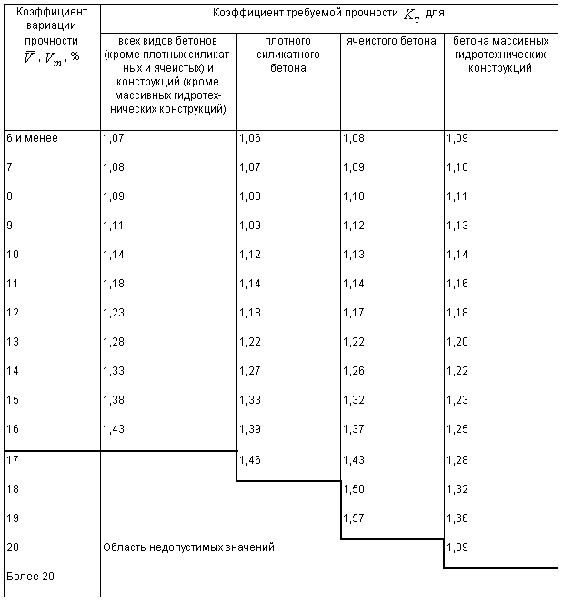 3.2 требуемая прочность бетона : Минимально допустимое среднее значение прочности бетона в контролируемых партиях бетона или конструкций, соответствующее нормируемой прочности бетона и ее фактической однородности.