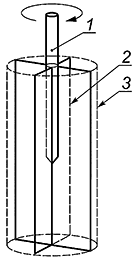 1 - штанга; 2 - лопасть; 3 - цилиндрическая поверхность среза | d - диаметр крыльчатки; h - высота крыльчатки; t - толщина лопасти |