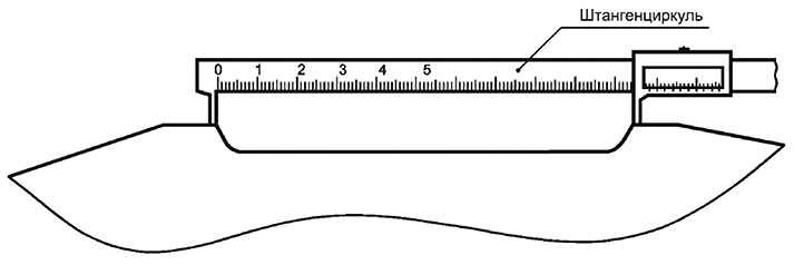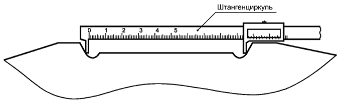 7.4.1 В шпалах типа I губки штангенциркуля должны касаться по линии пересечения в точках упорных кромок углублений в соответствии с рисунком 8 а.