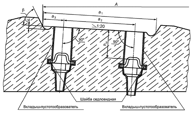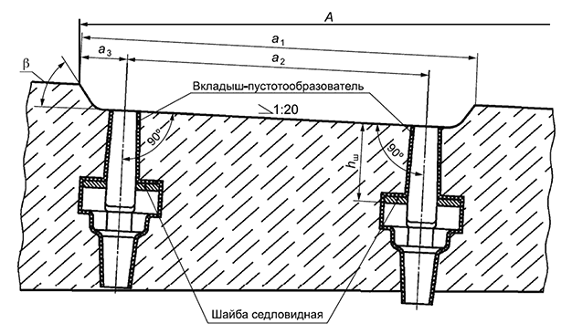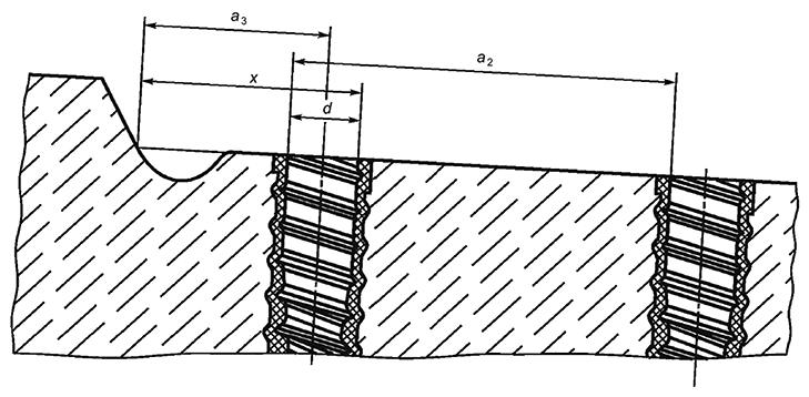 х - расстояние от упорной плоскости углубления в площадке до ближайшего отверстия.