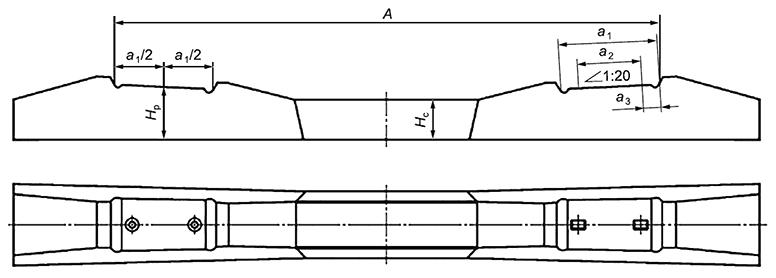 Основные геометрические параметры шпал: A , , , , с , , | 5.1.3, 5.1.4 | 7.4-7.6, 7.8-7.10 | |
